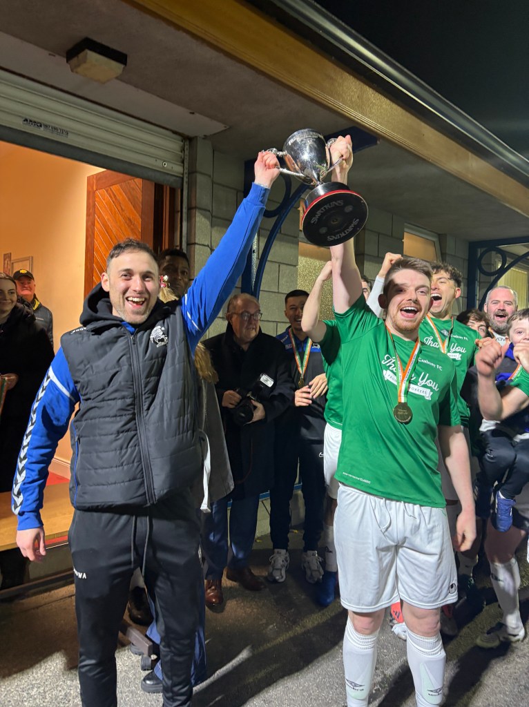 Manor got a late goal back through Montgomery in added time, but Carbury ran out 4-1 winners to retain the trophy.